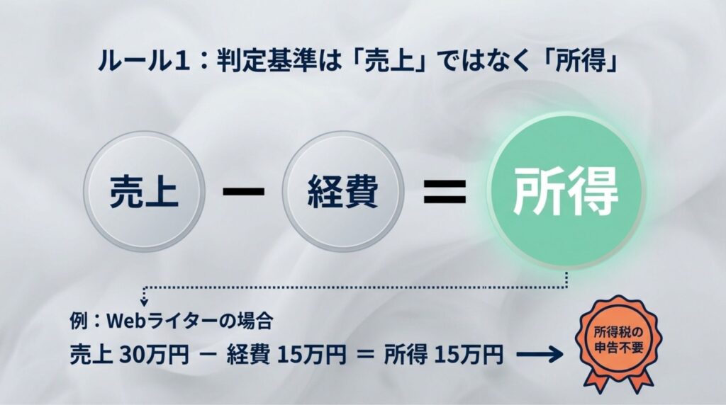 ここで注意したいのが、20万円というのは「売上」ではなく「所得」であるという点です。