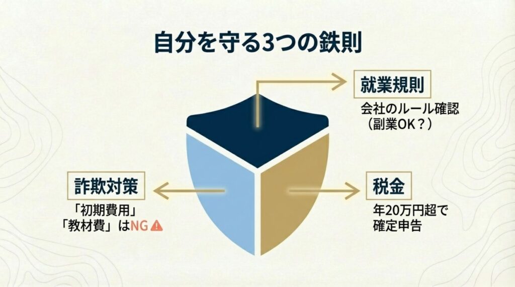 - 怪しい情報が多い: 「誰でも簡単に」「初期費用〇万円」といった詐欺まがいの勧誘には細心の注意が必要です。