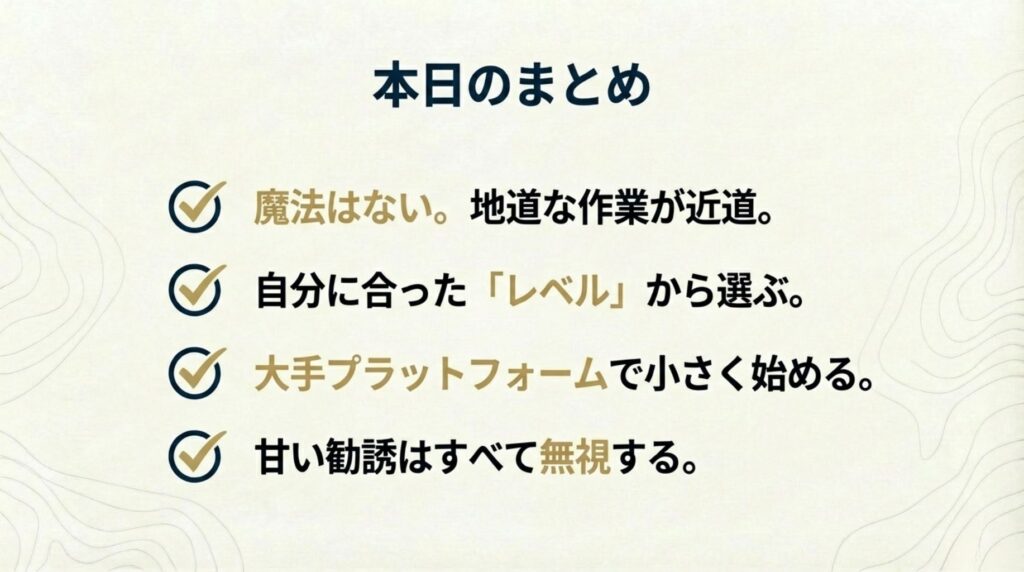 大切なのは、怪しい情報に惑わされず、堅実な方法で「最初の一歩」を踏み出すこと。