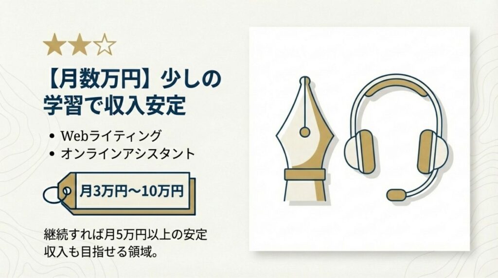 レベル★★☆:少しの学習で月数万円を目指す人向け